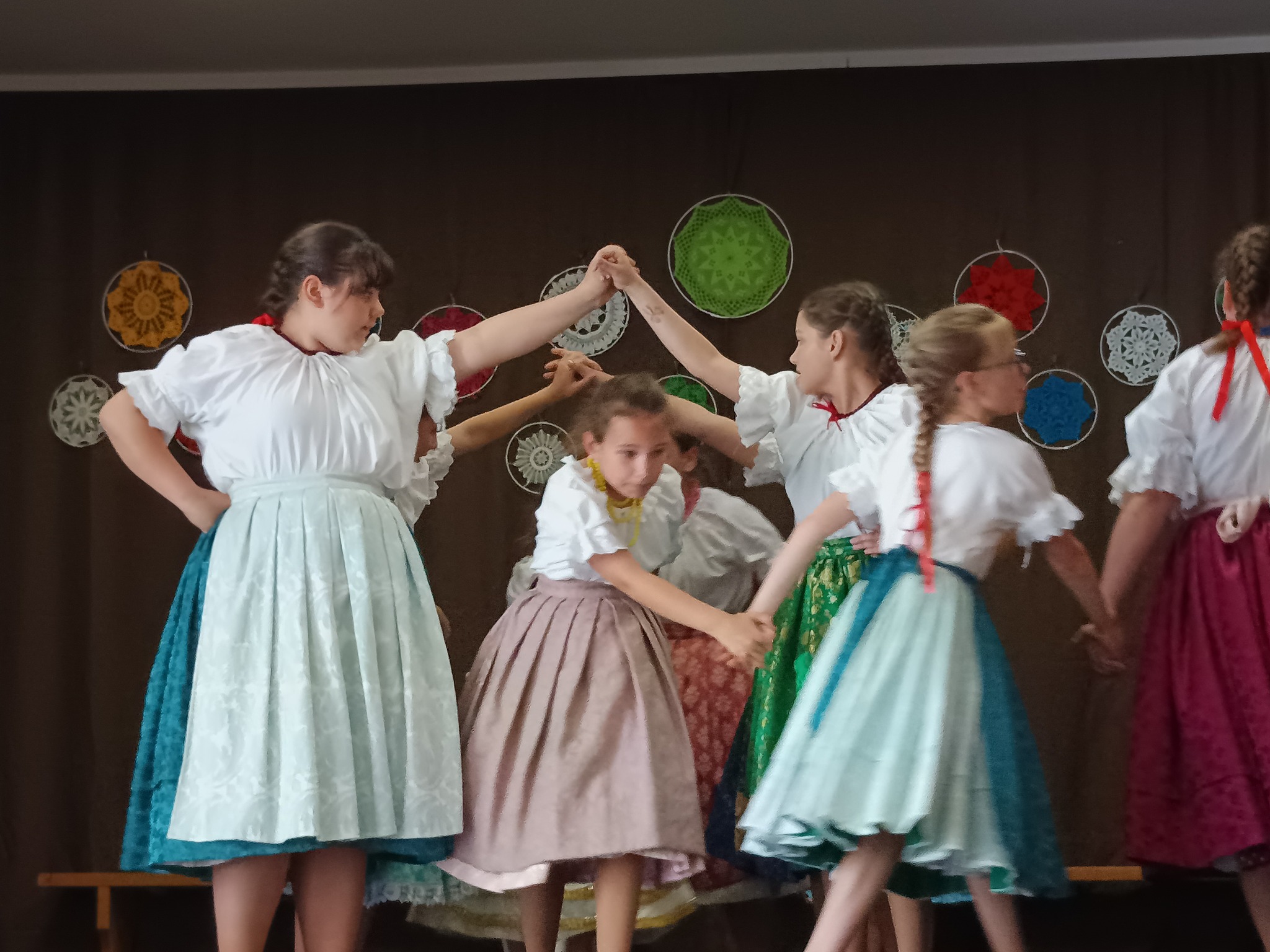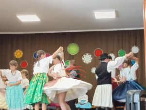 A nagyobbak kiszéztek, böjti karikázót jártak, volt húsvéti locsolkodás és pünkösdölés is. Táncoltak csallóközit, rimócit, rétközit, rábaközit és moldvait.